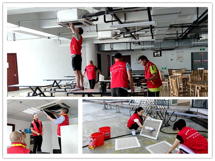 活動當天,十多名黨員和志愿者們按照分工拿著清洗工具、消毒液等,分組分點對公司24、25樓會議室、公共區(qū)域和5樓食堂的中央空調內機濾網(wǎng)、風葉進行清理、擦洗和消毒,充分發(fā)揚不怕吃苦、樂于奉獻的精神品質。同時,黨員和志愿者們還結合當前垃圾分類工作,向業(yè)主單位發(fā)放垃圾分類宣傳資料,廣泛宣傳垃圾分類相關知識,切實提高業(yè)主單位職工群眾垃圾分類知曉率和參與度。