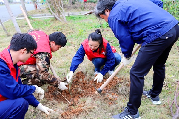 活動現(xiàn)場,大家分工合作,有的挖坑、有的扶樹苗、有的澆水,熱鬧的場面溫馨而快樂。一眨眼的功夫,許多樹苗便“亭亭玉立”在沃土上,雖然大家腳底全是泥土,但眼前這一片新生的春意讓大家滿心歡喜。