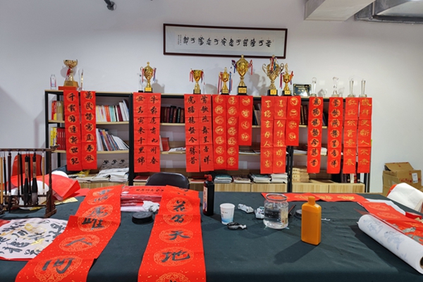 “書(shū)法家”們筆走龍蛇、揮毫潑墨,香氣四溢,“丑去寅來(lái)千里錦 牛奔虎嘯九州春”、“虎踞龍?bào)唇駝傥?鶯歌燕舞呈吉祥”……一幅幅對(duì)仗工整、寓意吉祥的春聯(lián)和一張張力透紙背的“福”字,洋溢著新春的喜氣!